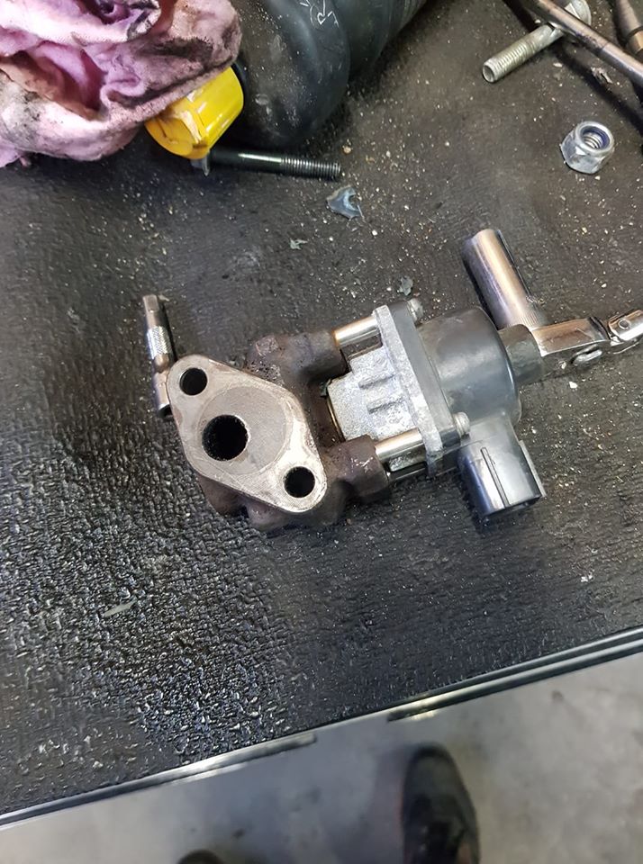 EGR klep van een Suzuki 1.3 benzine , zou dit voortkomen uit E10 gebruikAuto liep heel onregelmatig stationairBlijkt de klep zeer zwaar te gaan door vervuiling /bruine aanslagSchoongemaakt en gaat weer soepel