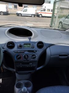 Nog goede Toyota Yaris met originele radio en in hoogte verstelbaar stuur met trekhaak voor een aantrekkelijke prijs met APK tot 03-21 blanke lak laat op sommige plekken los maar geen roest